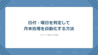 VBAで日付・曜日を判定し、月末最終営業日にだけ処理を実行する方法を解説。WeekdayとDateSerialの組み合わせで土日除外。コピペで動くコード付き。月次処理の手動確認から解放される。