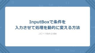 VBAのInputBoxで入力ダイアログを表示し、ユーザーが入力した値で処理を動的に切り替える方法を解説。キャンセル判定・バリデーション・Application.InputBoxの型指定まで実務コード付き。