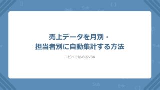 Excel VBAで売上明細データから月別・担当者別のクロス集計表を自動生成する方法を解説。Dictionaryによる月別集計の基本コードと、複数軸集計・グラフ自動作成・前月比計算・集計シート自動生成の実務版コード付き。コピペで動く。