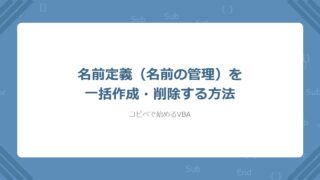 VBAで名前定義(名前の管理)を一括作成・削除する方法を解説。Names.Add/Names.Deleteの基本から、エラー名前の検出削除、一覧表からの一括登録まで。コピペで動く実務コード付き。