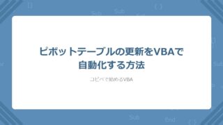 VBAでピボットテーブルを自動更新する方法を解説。PivotTable.RefreshTableの基本から、全ブック内の全ピボット一括更新・データソース範囲の自動拡張・Workbook_Openイベントでの自動更新まで。コピペで動く実務コード付き。