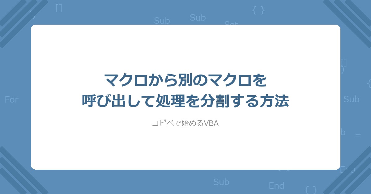 この記事では、VBAで別のマクロ(プロシージャ)を呼び出して処理を分割する方法を解説した。