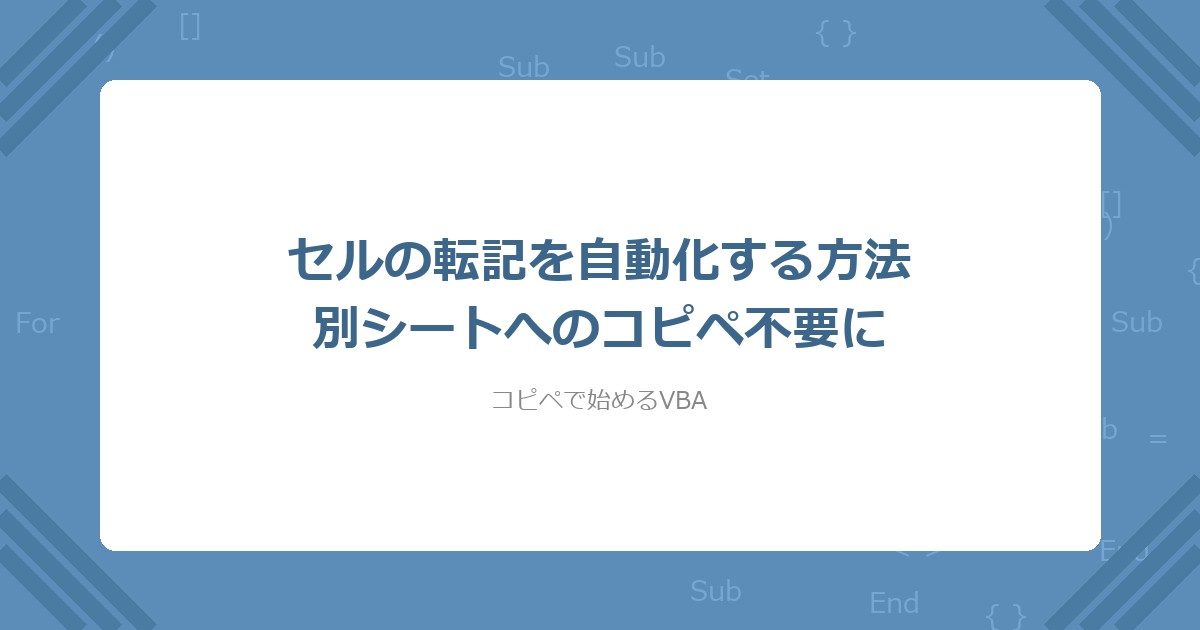 原因: Range.Copy + Range.Paste だと書式もコピー。対策: 実務版は .Value = .Value で値だけ転記。