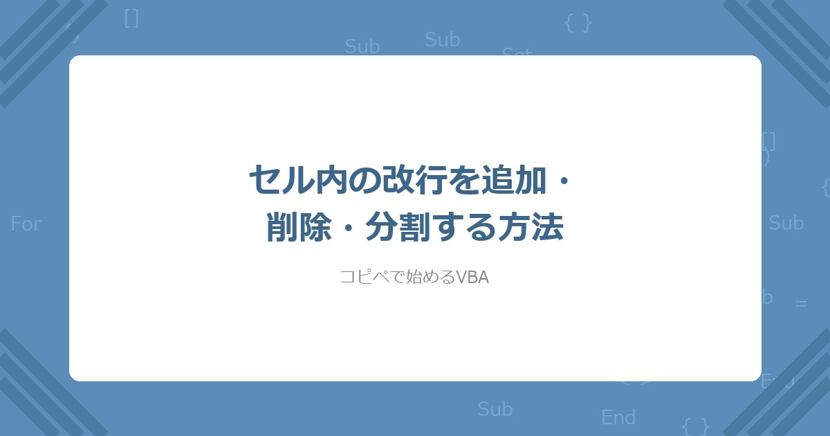 この記事では、VBAでセル内の改行を追加・削除・分割する方法を解説した。