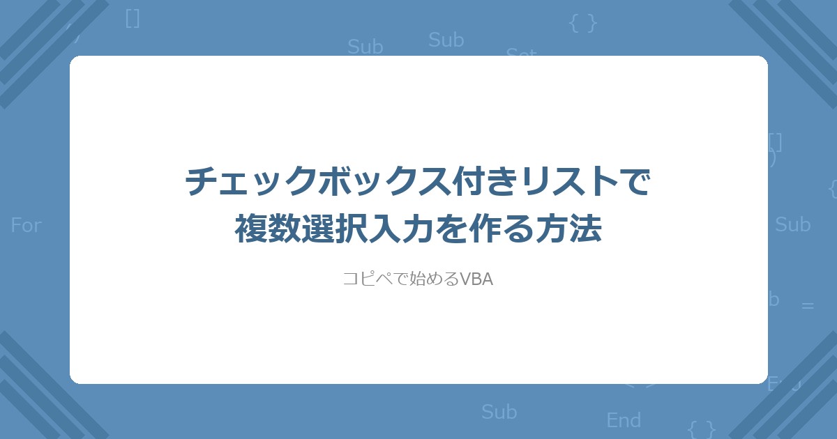この記事では、VBAのUserFormにチェックボックス付きリストを作り、複数項目を選択入力する方法を解説した。