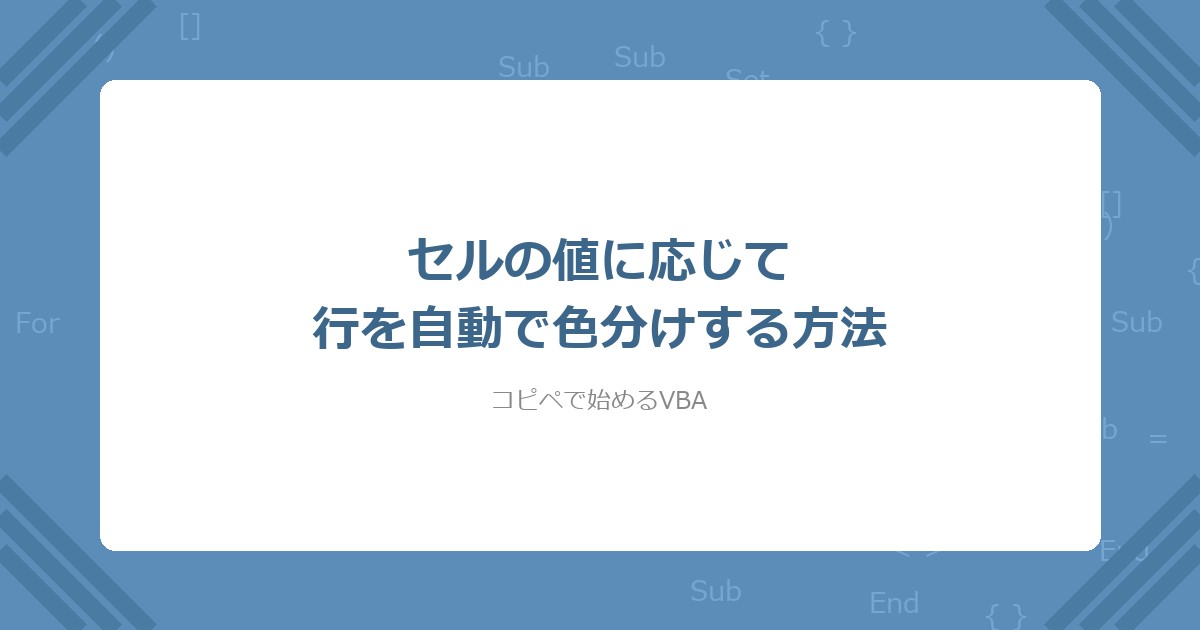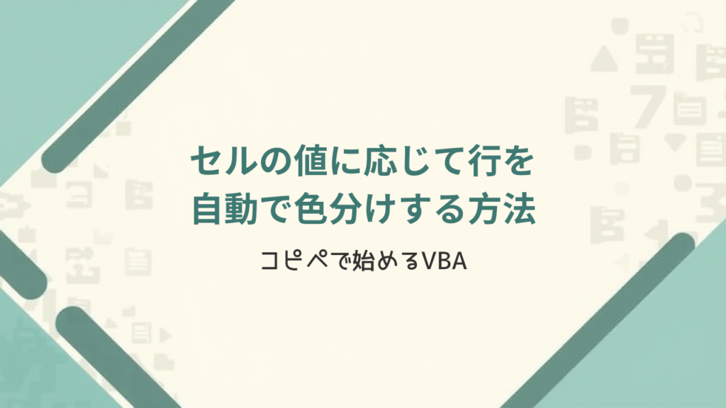 Excelの表で「完了」「未対応」「対応中」などのステータスに応じて、行の色を手作業で塗り分けていませんか? VBAを使えば、コードをコピペして実行するだけで、指定列の値に応じて行全体が自動で色分けされます。この記事では、最小限のコード(Select Case+RGB関数)から、設定シートで色ルールを管理する実務版まで解説します。