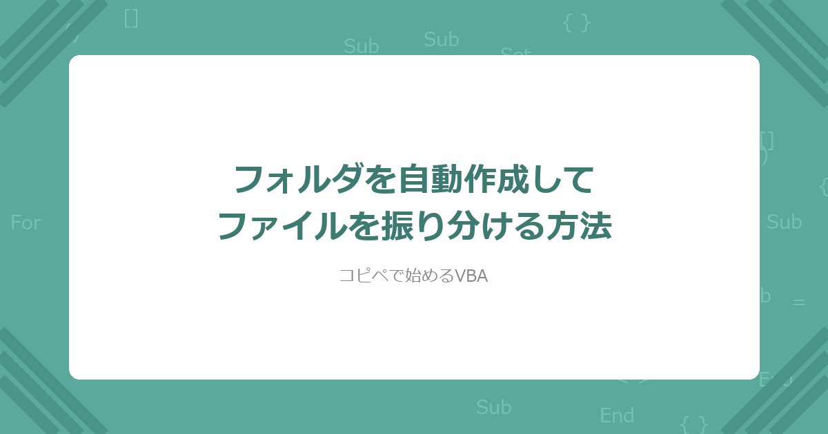 この記事で、VBAを使ったフォルダの自動作成とファイルの振り分けができるようになった。