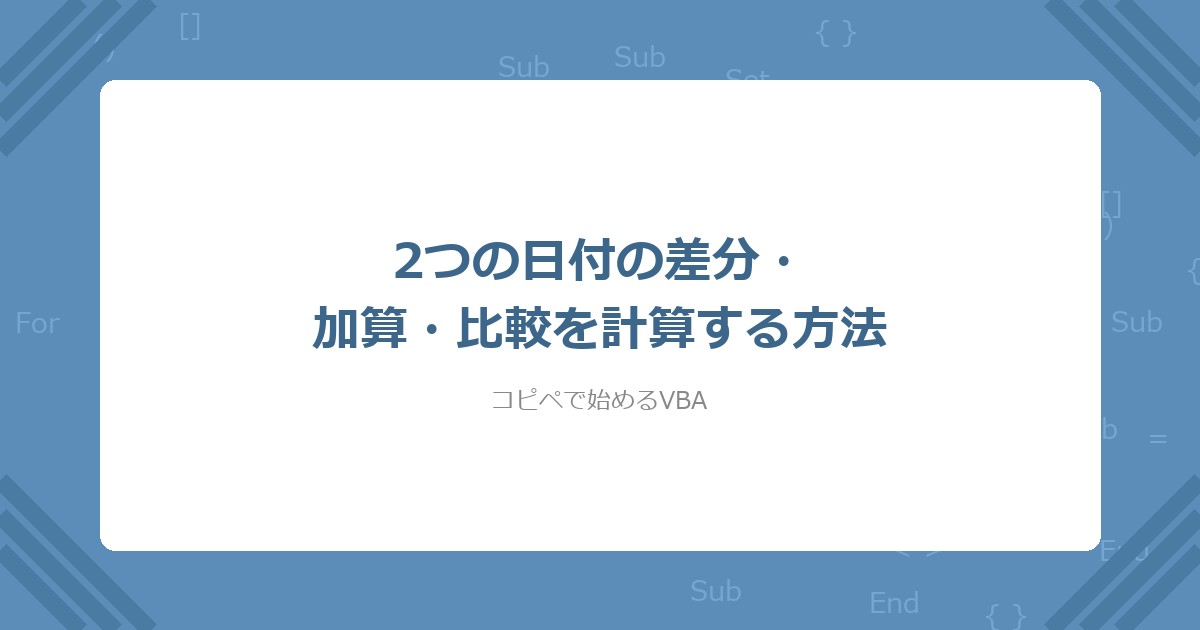この記事では、VBAで2つの日付の差分・加算・比較を計算する方法を解説した。