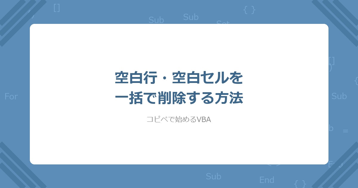 - 最小版: SpecialCells で空白行を一括削除(5行のコードで完了)