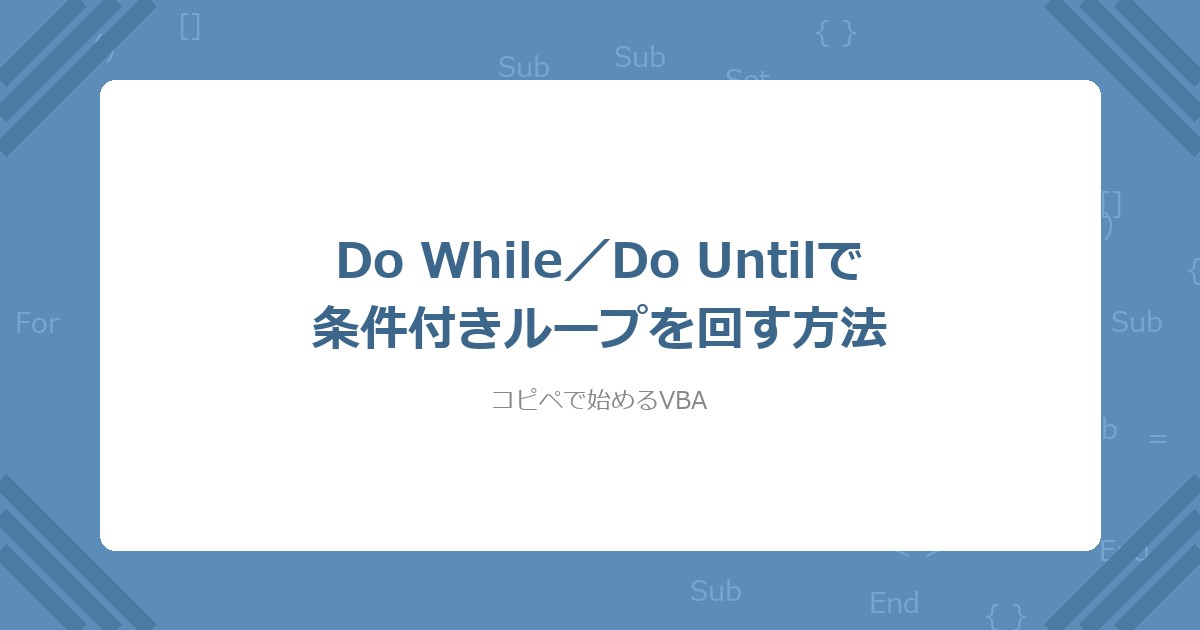 自分もFor Nextだけでループを書いていた時期がある。「セルが空になるまで繰り返す」を実現するために毎回 End(xlUp).Row で最終行を取得していたが、途中に空行があるデータでは最終行がずれて処理が抜けることがあった。地味に面倒だった。Do Whileを覚えてからは「空セルに当たったら止める」が1行で書けるようになり、最終行の取得で悩むことが減った。この記事で、同じように条件付きループに苦労している人がサクッと使えるようになればうれしい。