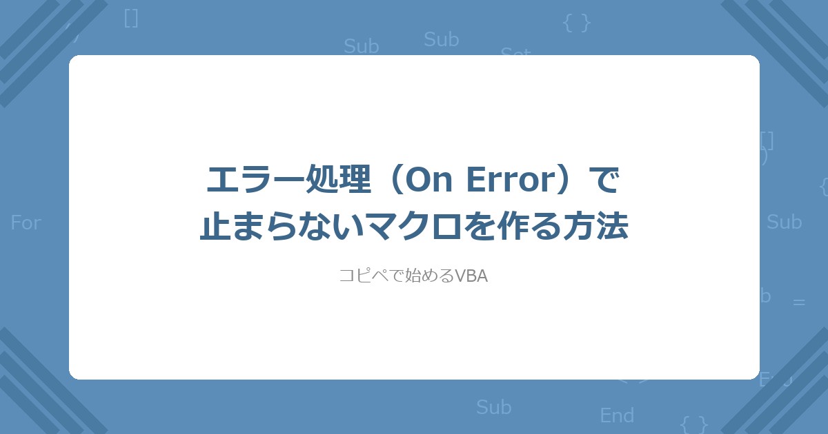 【VBA】エラー処理(On Error)で止まらないマクロを作る方法(コピペOK)