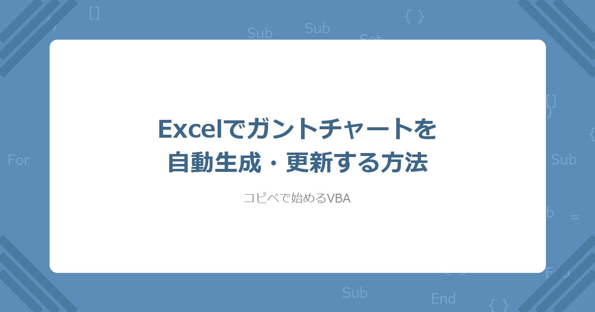 この記事では、VBAでタスク一覧(開始日・終了日)からセルの色塗りでガントチャートを自動生成する方法を解説した。