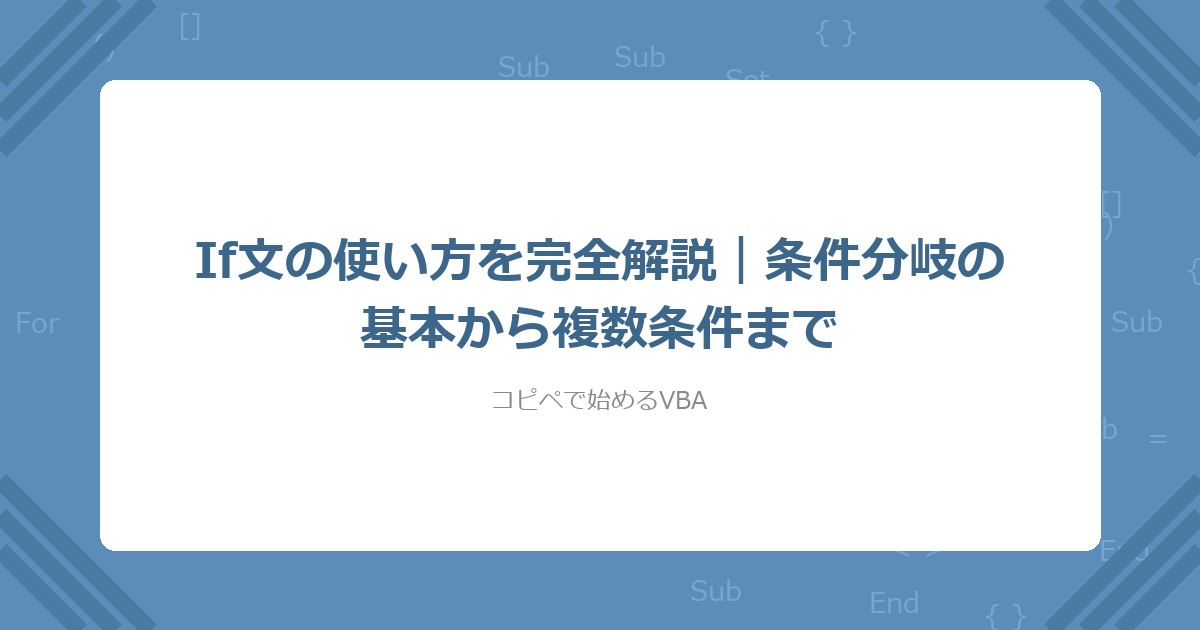 【VBA】If文の使い方を完全解説|条件分岐の基本から複数条件まで(コピペOK)