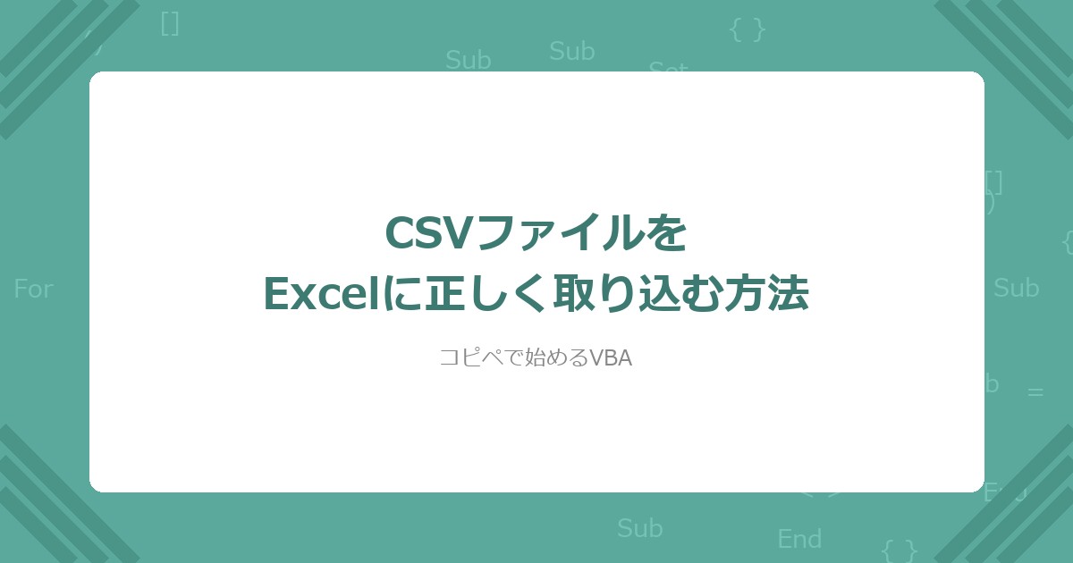 VBAでCSVファイルをExcelに正しく取り込む方法を、コピペで動くコード付きで解説します。