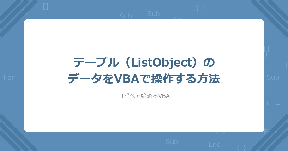 【VBA】テーブル(ListObject)のデータをVBAで操作する方法(コピペOK)