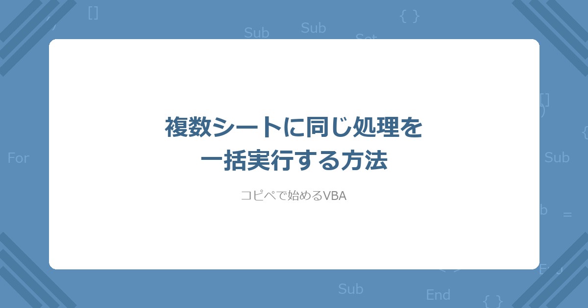 【VBA】複数シートに同じ処理を一括実行する方法(コピペOK)