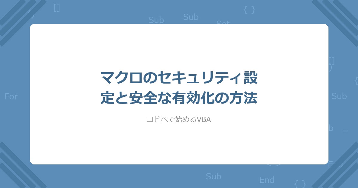タイトル: 【VBA】マクロのセキュリティ設定と安全な有効化の方法(コピペOK)