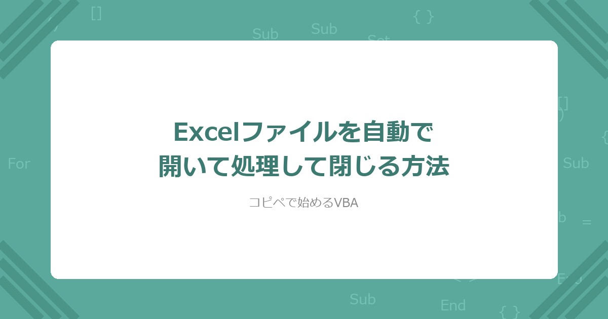 VBAでExcelファイルを自動で開いて処理して閉じる方法を解説しました。