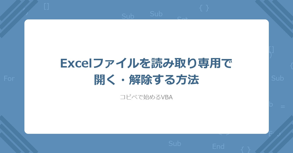この記事では、VBAでExcelファイルを読み取り専用で開く・解除する方法を解説した。