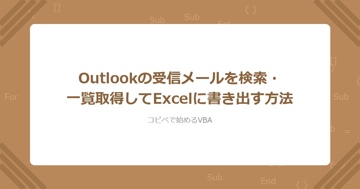 タイトル: 【VBA】Outlookの受信メールを検索・一覧取得してExcelに書き出す方法(コピペOK)