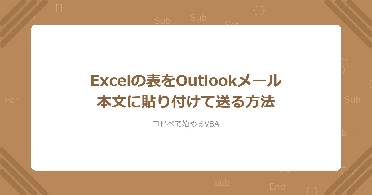- Excelからメール自動作成(Outlook連携) — テキストメールの基本。表が不要な場合はこちら