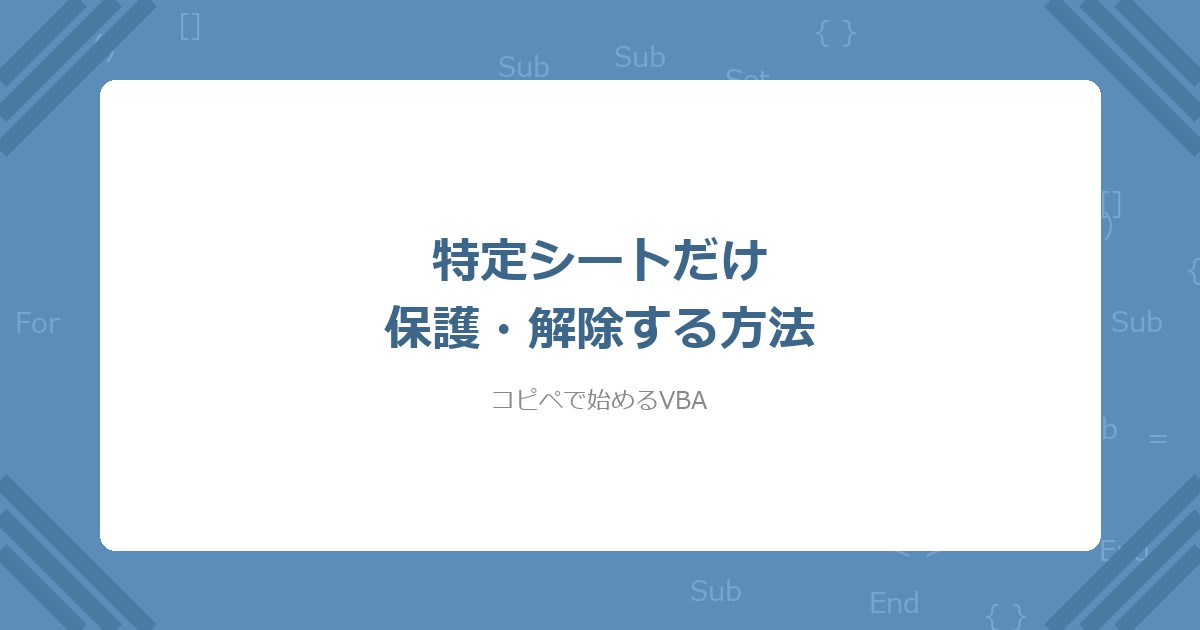 全シートをループして一括処理する基本は 複数シートに同じ処理を一括実行する方法 を参照。本記事ではその応用として「保護」に特化する。