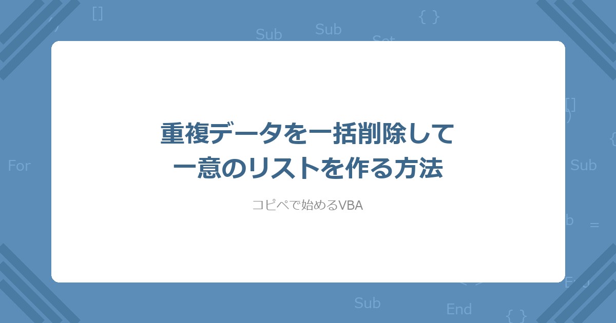 【VBA】重複データを一括削除して一意のリストを作る方法(コピペOK)