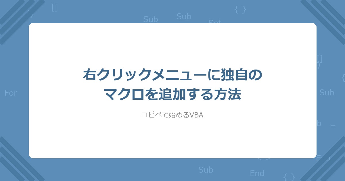 ' ■ 右クリックメニューに独自マクロを追加(基本版)