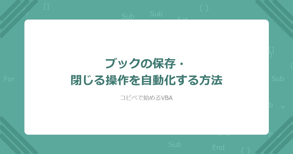 この記事で、VBAによるブックの上書き保存・名前を付けて保存・閉じる操作を自動化できるようになった。