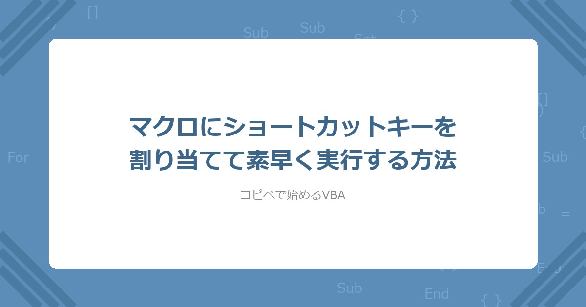 この記事では、VBAマクロにショートカットキーを割り当てて、Ctrl+文字の一発で実行する方法を紹介する。