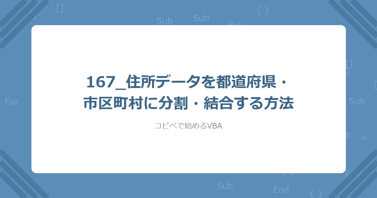 対象:住所の分割・結合を手作業でやっている人、VBA初心者。