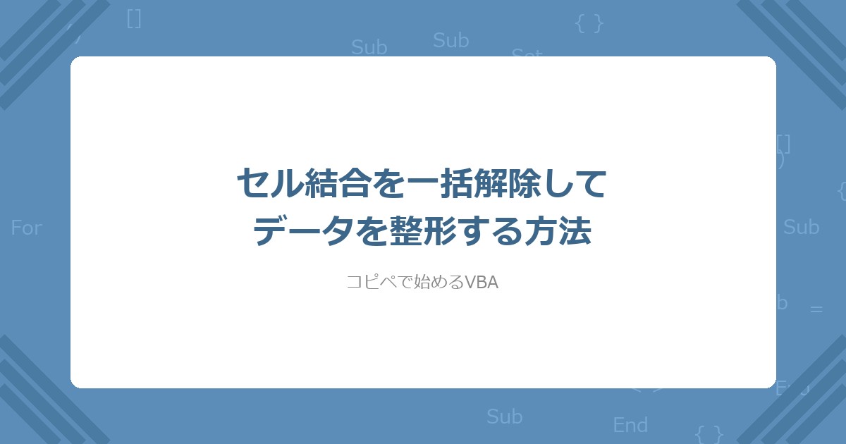 「結合を解除したら2行目以降のセルが空白になった」という場合、これはExcelの仕様で正常な動作だ。結合セルは左上のセルにだけ値が入っており、解除すると残りのセルは空白になる。解除後に空白セルを上方向のセル値でフィルする処理をコードに入れれば、全行にデータが入った状態にできる。