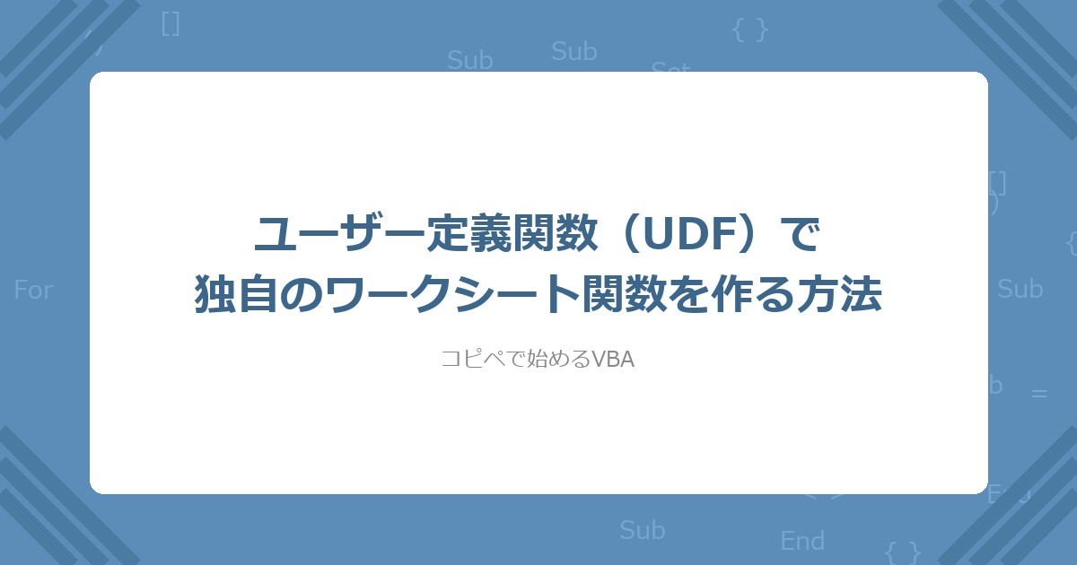=関数名(引数)と入力して使える独自のワークシート関数(UDF)が作れる。