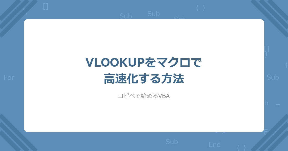 タイトル: 【VBA】VLOOKUPをマクロで高速化する方法(コピペOK)