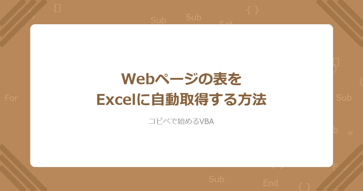 - VBAでWebページの表(テーブル)をExcelに自動で取得できる