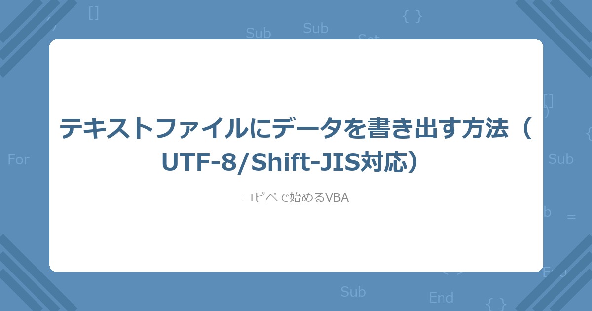 タイトル: 【VBA】テキストファイルにデータを書き出す方法(UTF-8/Shift-JIS対応)(コピペOK)